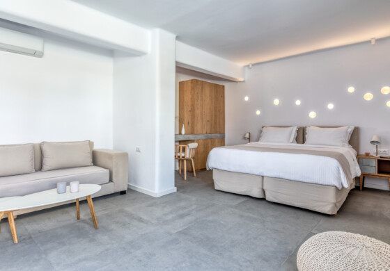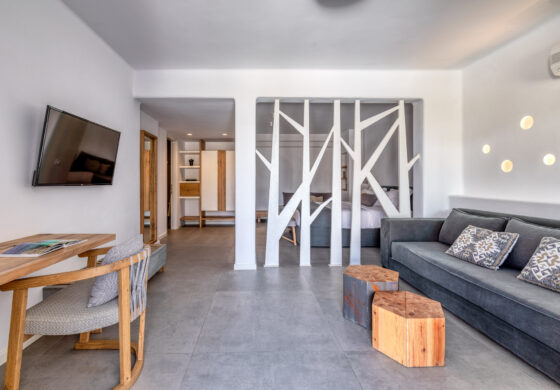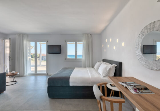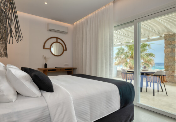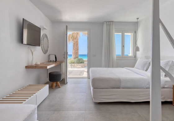 Apart from the standard and deluxe rooms there are also beautiful pool access suites and spacious beachfront apartments with more than one bedroom which can offer an ideal stay for families, rating Elia Mykonos Resort as one of the best hotels in Mykonos for families.